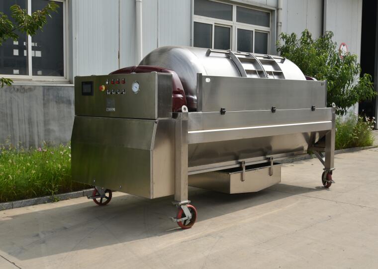 該壓榨機是以柔性膜材制成的氣囊與不銹鋼罐體構(gòu)成的壓榨機室,經(jīng)壓縮空氣充氣時包住含汁果渣,從外向內(nèi)擠壓,經(jīng)由濾網(wǎng)及收集管道提取果汁的專用設(shè)備。